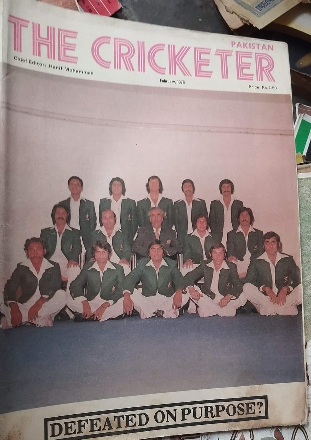 The magazine used the same logo as The Cricketer (UK, founded 1921) from 1972 till May 1974. After that (probably due to confusion or legal action), "Pakistan" was added under The Cricketer logo. In August 1975, the magazine adopted the iconic three lines logo which continued till the magazine's demise in 2008.